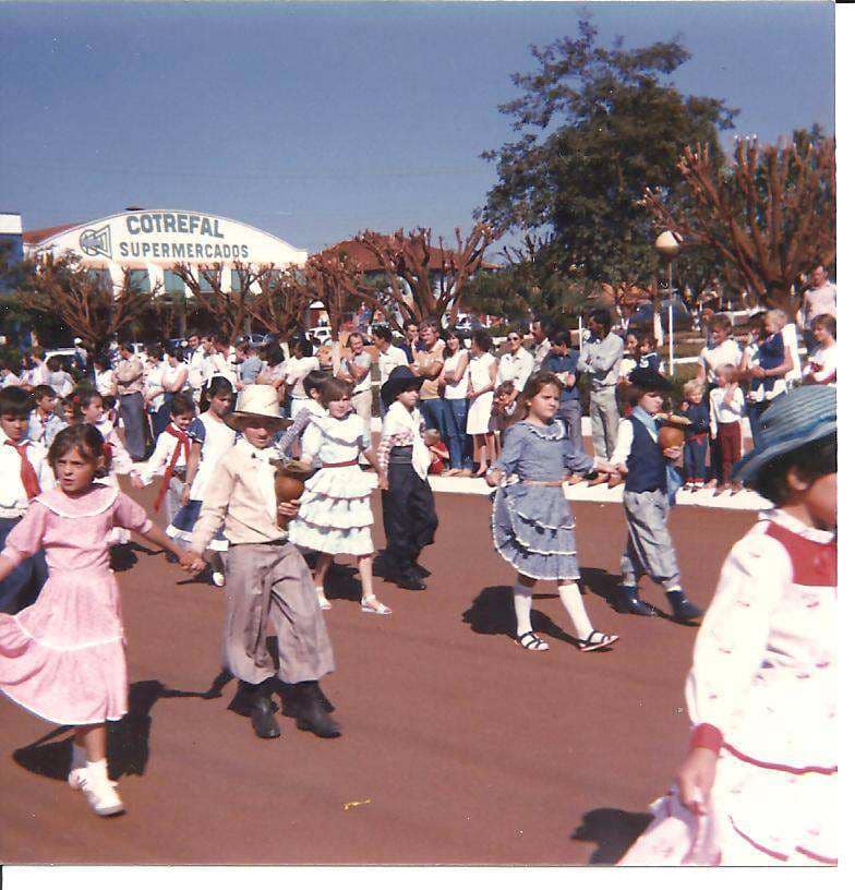 Representação da cultura gaúcha, estudantes do Graciliano Ramos, fim da década de 80, em Santa Helena.