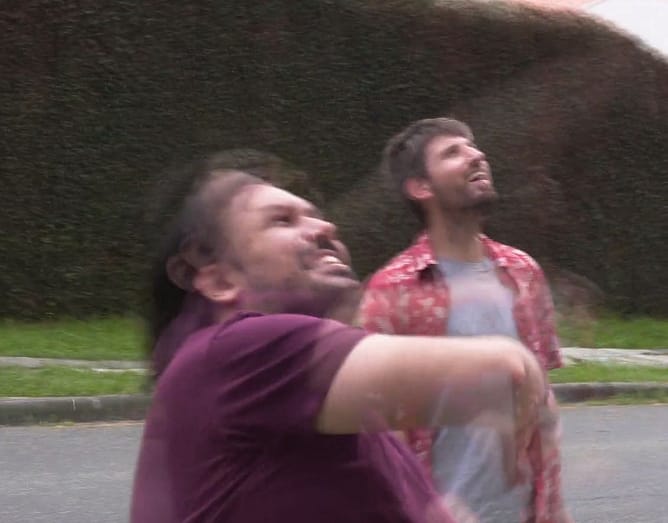 Enfim, mesmo com essas observações ácidas que registro aqui, o filme de Evandro Scorsin é um sucesso: ele queria nos conduzir à esse contraste de linguagens artísticas, a ficção encenada e o registro do diretor “pesquisando” personagens de um lado e o registro documental de outro, como uma espécie de anteparo para mostrar uma coisa simples: uma conversa sobre amizade com seu amigo Barba. Barba aliás me disse que não estava muito acostumado a “atuar”. Não disse nada, não repliquei, mas pensei comigo: Barba, você é assim mesmo! Estou rindo disso, mas não falo como algo pejorativo, e sim como um elogio à uma personalidade bastante amável e intrigada com algumas coisas da vida. Não acho que o Barba, ou Christopher Faust, persona e personagem se confundem, esteja o tempo todo questionando pressupostos e etc, mas ele sem dúvida transmite a imagem de alguém aberto, até certo ponto, aos questionamentos. Scorsin mostra isso no filme ao interrogá-lo de forma afetuosa mas incisiva.
